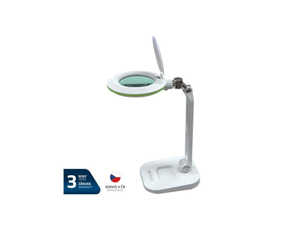 Stolní lupa GET GDM24 je ideální pomocník v domácnostech, dílnách, kancelářích a mnoha dalších pracovištích. Výborně se hodí pro práci s elektronikou a ke kontrolní činnosti. Polohovací stojan umožňuje přesné a pohodlné nastavení lupy. Díky úspornému LED přisvícení lze s lupou pracovat i v nevyhovujících světelných podmínkách, nebo ji využít jako stolní lampu. K dispozici je i malá vložená čočka s 12 dioptriemi, kterou lze použít ke zvětšování velmi malých dílů , nápisů (např.zjišťování typu součástky a pod.).Kvalitní skleněná čočka (3 dioptrie) je vhodná pro jemnou práci. Lupa je vybavena krytem čočky a dlouhým ramenem pro velký rozsah pohybu. Výhodou této lupy je možnost plynule měnit jas světla (stmívač) pomocí dotykových ovládacích tlačítek a přizpůsobit tak osvětlení přesně podle Vašich potřeb. Parametry produktu: - kompaktní stolní LED lupa- dotykové ovládací prvky- regulace jasu - vybavená krytem čočky- kvalitní skleněná čočka- kvalitní kovový kloub - vložená čočka s 12 dioptriemi- barva: bílá Technické parametry: - napájecí napětí: 230 V~AC / 50Hz - příkon: 7 W, 0,6 A - počet SMD LED: 42 - světelný tok: 500 lm - barva světla: 6500 K- energetická třída: G - průměr čočky: 95 mm - počet dioptrií: 3 dioptrie + 12 dioptrií - zvětšení: 1.75 x- zvětšení přídavné čočky: 4x - délka ramene stojanu: 300 mm - pracovní teplota: -10°C až +40°C - stupeň krytí: IP20 (vnitřní použití)- balení: 1 ks , papírová krabiceDoplňkové parametry