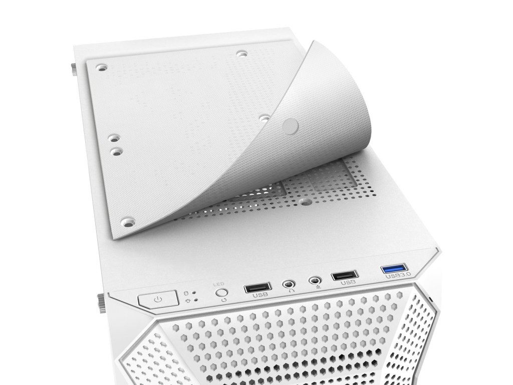 Design počítačové skříně EVOLVEO Xenon-WH-4 není jen stylový, ale i robustní. Plechy o síle 0,5 mm tvoří pevný základ, který váhu nadupané sestavy snese bez sebemenšího problému. V dolní části pak má skříň čtyři protiskluzové nožičky, které zajišťují, že počítač zůstane nehybný i v nejdivočejších herních situacích.