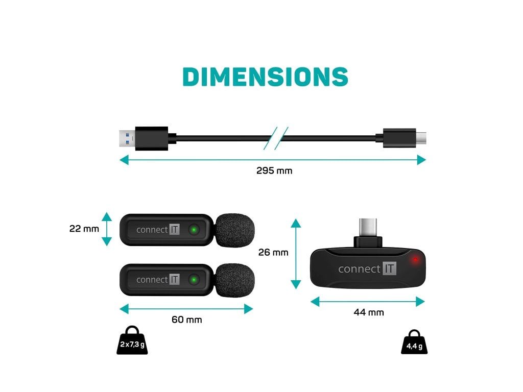 CONNECT IT Wireless Lavalier mikrofon USB-C (2 ks + receiver) set ČERNÝ (CMI-1011-BK)