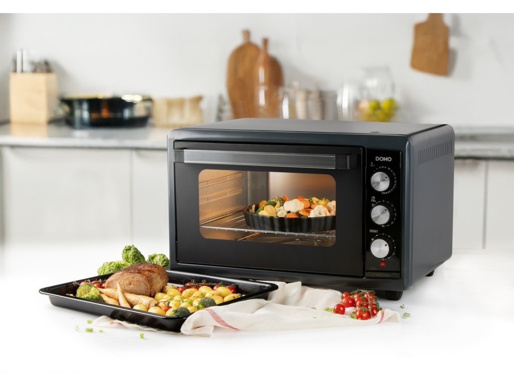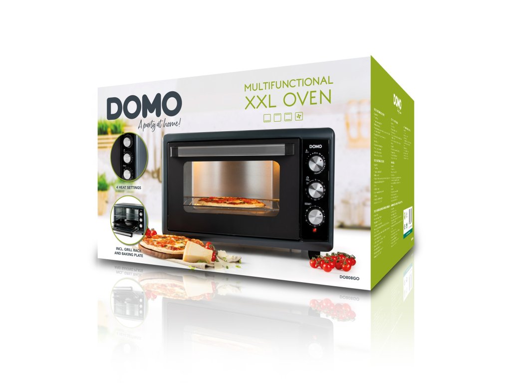 DOMO DO808GO je multifunkční volně stojící trouba s velkým objemem 50 litrů, ideální pro pečení, grilování a zapékání.Díky čtyřem funkcím ohřevu a nastavitelnému rozsahu teplot od 30 do 230 °C můžete připravit každý pokrm dokonale.