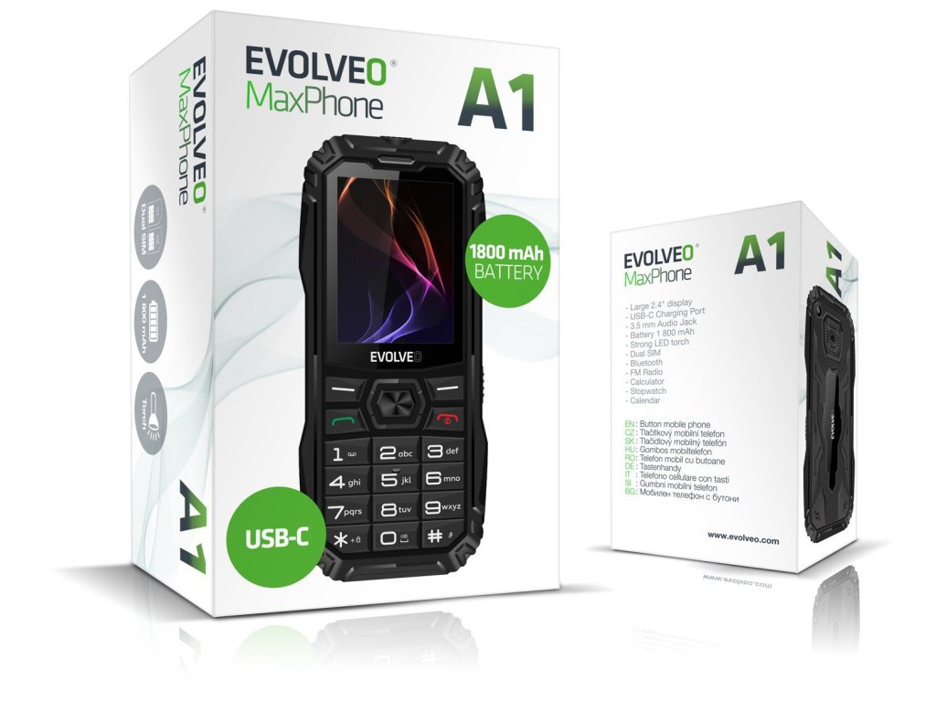 EVOLVEO MaxPhone A1 je malý zázrak plný praktických funkcí. Silná LED svítilna (s bočním ovládáním, které máte pořád na dosah ruky) vám posvítí na cestu i v té nejtemnější noci. FM rádio či přehrávač hudby a videí vám zase ve spolupráci s klasickým 3,5mm sluchátkovým jack portem zpříjemní dlouhé chvíle oblíbenou hudbou nebo zprávami. A funkce Dual SIM přinese možnost používat dvě SIM karty najednou – pomocí této vychytávky např. můžete snadno oddělit pracovní a soukromé číslo, přičemž každé z nich bude mít vlastní vyzváněcí tón. Výměna SIM karet je tu na rozdíl od většiny chytrých telefonů možná bez vysouvací jehly.