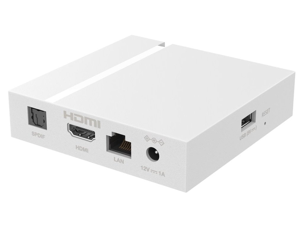 Připojení: S/PDIF, HDMI 2.1, USB 2.0, LAN, napájecí adaptér 12V/1A DC, Wi-Fi, Bluetooth