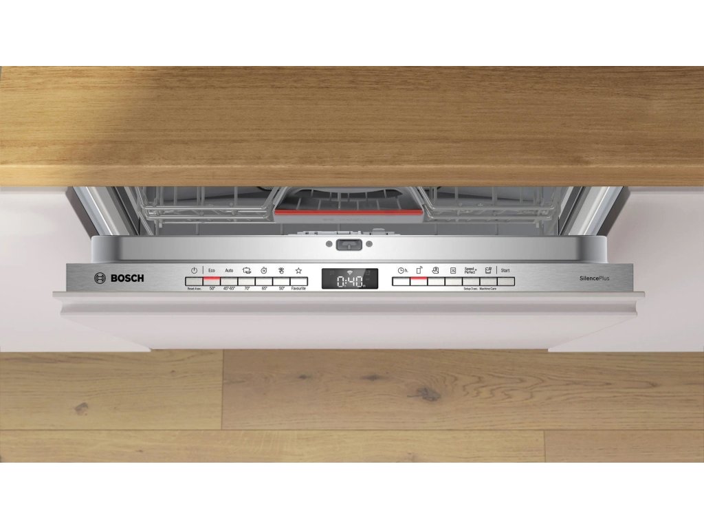 Bosch SMV4EVX00ENeztrácejte čas stáním u dřezu – mytí špinavého nádobí raději přenechte úsporné myčce nádobí Bosch SMV4EVX00E. Jedná se o plně vestavný model, který optimálně zapadne do každé kuchyně. Vnitřní prostor pojme až 14 sad nádobí, což ocení i početnější rodiny. Nádobí variabilně uspořádáte do košů Flex a příborové zásuvky. Po umytí se dvířka automaticky pootevřou a nádobí šetrně doschne: EfficientDry. Nastavení všeho potřebného ještě více usnadňuje možnost propojení s mobilní aplikací Home Connect a ovládání na dálku. Myčka vás potěší také svým tichým chodem. Případný hluk lze pomocí funkce Silence on demand ještě efektivněji potlačit, a to na dobu až 30 minut. Potěší vás speciální funkce, jako např. Vzdálené zapnutí, Poloviční náplň nebo zrychlené mytí SpeedPerfect +. O průběhu cyklu vás přehledně informuje InfoLight – červený bod promítaný na podlahu.