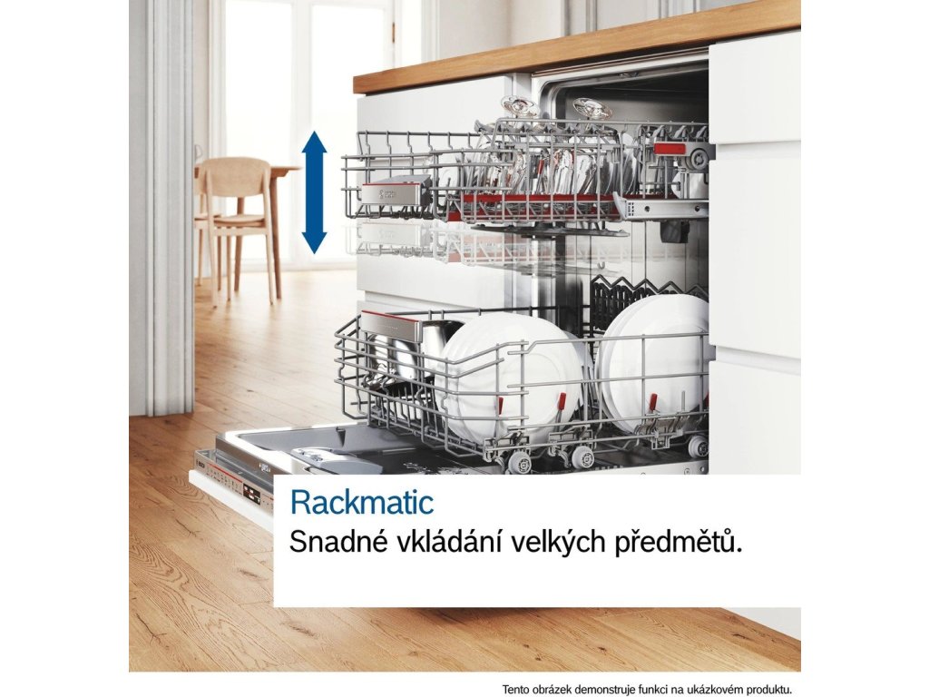 Interiér myčky nabízí flexibilní koše VarioFlex s červeně označenými uchopovacími částmi. Ty zaručí mimořádnou stabilitou a dostatek prostoru pro všechno nádobí. Vrchní koš lze díky systému Rackmatic nastavit do 3 různých výšek dle nádobí. Příbory jsou uloženy ve výsuvné příborové zásuvce VarioDrawer. Tam se vejdou také naběračky, drobné kuchyňské náčiní nebo šálky na espresso.