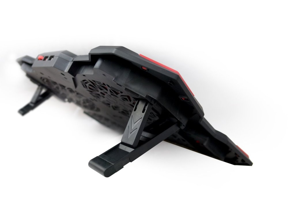 Chladící podložka ZEFYROS je novým přírustkem do herní řady značky C-TECH. Se vzrůstající oblibou herních notebooků je třeba notebooky kvalitně chladit, aby nedocházelo ke zpomalování chodu notebooku v důsledku přehřívání a zaroveň tak prodloužit jejich vlastní životnost. ZEFYROS je moderní chladící podložka určena pro notebooky do velikosti 17,3". Hlavním parametrem podložky je chladící výkon a celková hlučnost, kterou produkují použité ventilátory. Chladící podložka ZEFYROS je vybavena čtyřmi ultra tichými ventilátory o velikosti 140mm s LED podsvětlením a možností regulace otáček. Vlastní regulátor se nachazí na horní straně a lze jím plynule regulovat otáčky ventilátorů.Specifikace :