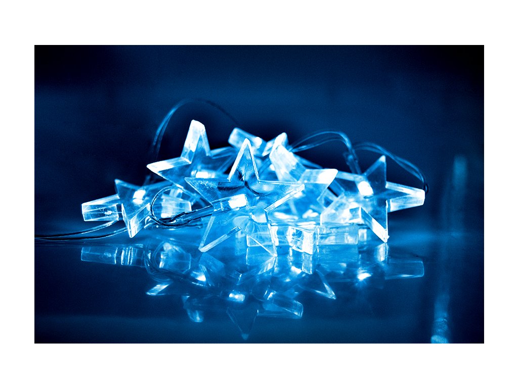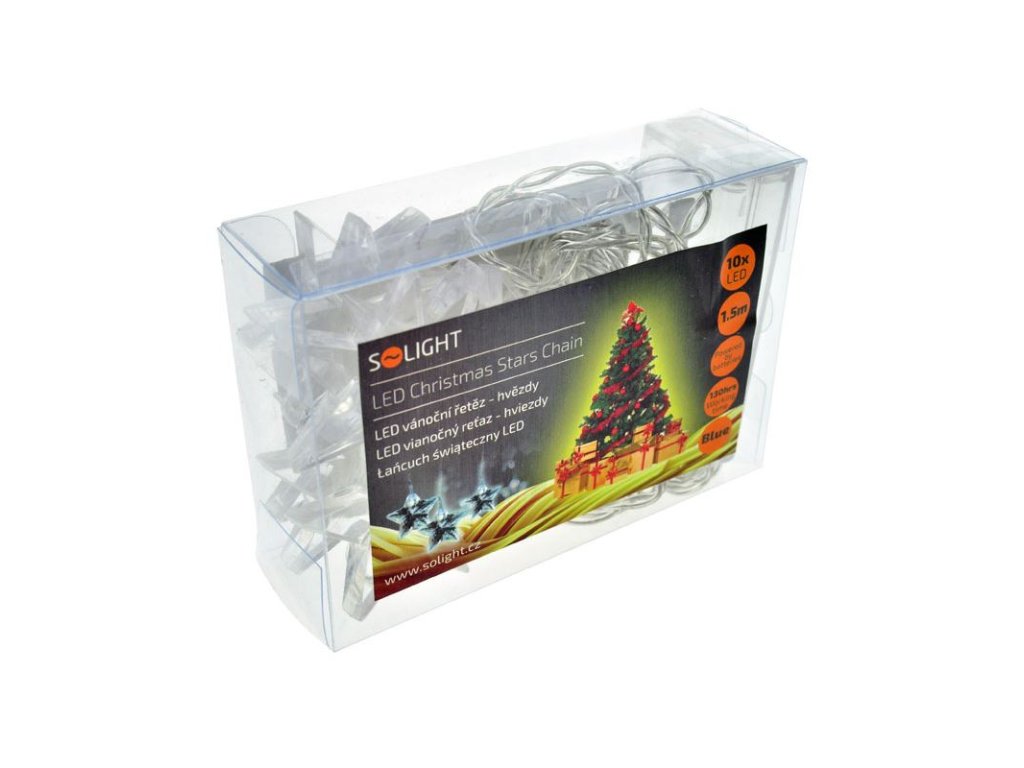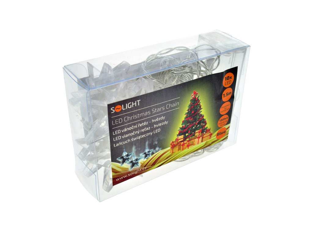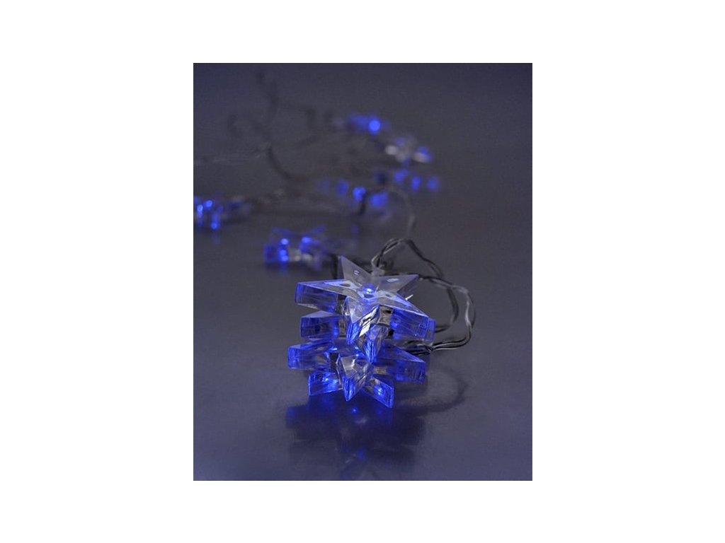 Solight LED vánoční řetěz, hvězdy, 1,5m, 10x LED, 2x AA, modré světlo (1V52-B)