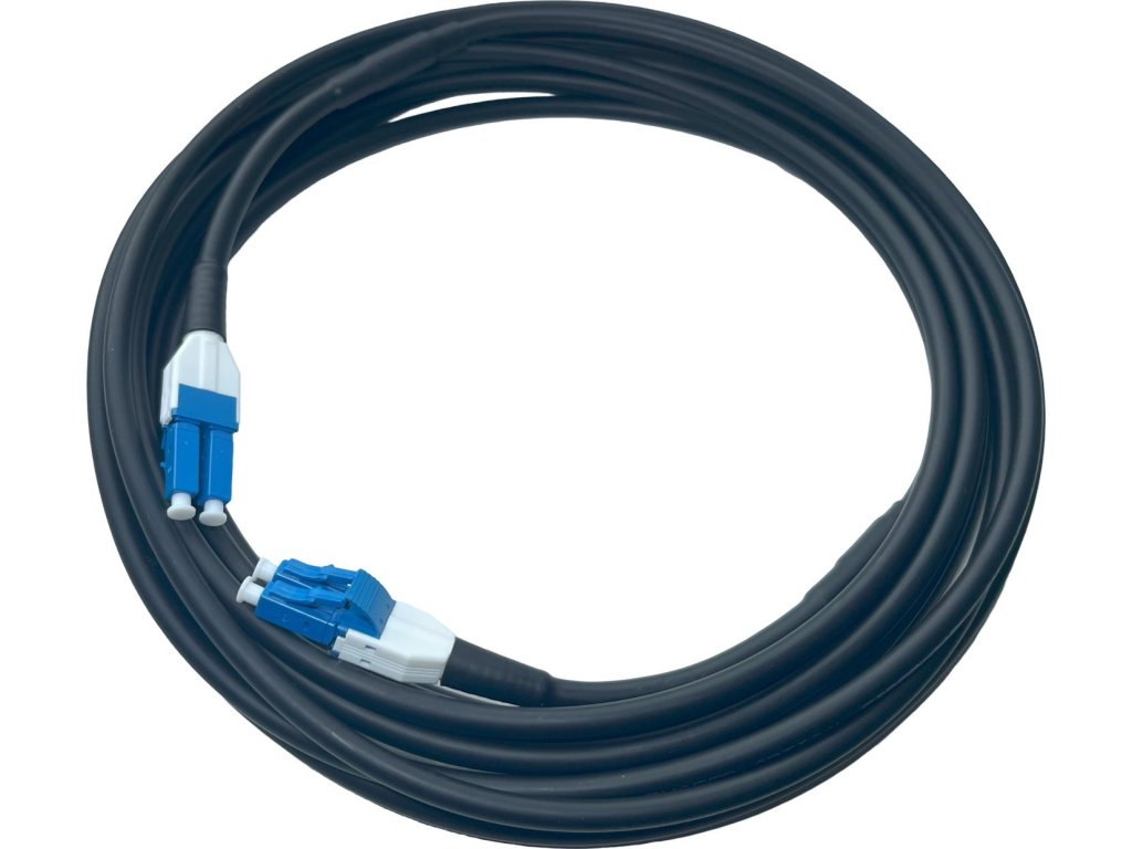 Venkovní optický patch cord s 10metrovou délkou a LC duplex konektory na obou koncích s UPC broušením je ideální pro propojení venkovních bezdrátových pojítek s vnitřními jednotkami, jako jsou switche nebo routery. Je vyroben pro náročné venkovní podmínky – plášť z UV odolného materiálu poskytuje dlouhodobou ochranu proti slunečnímu záření, zatímco dva aramidové tahové prvky zajišťují pevnost. Pro maximální ochranu je posledních 10 cm kabelu opatřeno armorem, což chrání vlákna před mechanickým poškozením při instalaci nebo manipulaci.Doplňkové parametry
