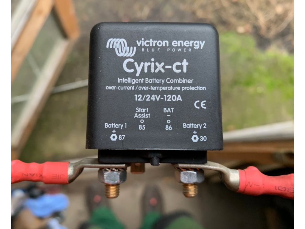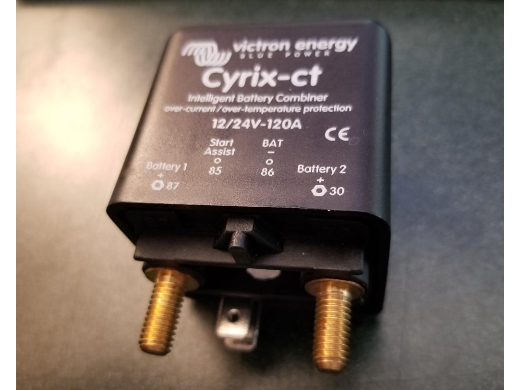 Victron Cyrix-ct 12/24V-120APropojovač baterií Cyrix je mikroprocesorem řízené výkonové relé, které automaticky propojí baterie paralelně, když jedna z nich dosáhla přednastaveného napětí (indikuje, že se baterie nabíjí) a odpojí baterie, když napětí poklesne pod úroveň udržovacího (float) napětí (indikuje, že jedna nebo více baterií je vybitých). Propojovače baterií Cyrix jsou dobrou náhradou oddělovačů Argo Diod. Jejich hlavní výhodou je, že nevykazují prakticky žádný napěťový úbytek, a proto nemusí být zvyšováno výstupní napětí nabíjecích alternátorů nebo nabíječek baterií.