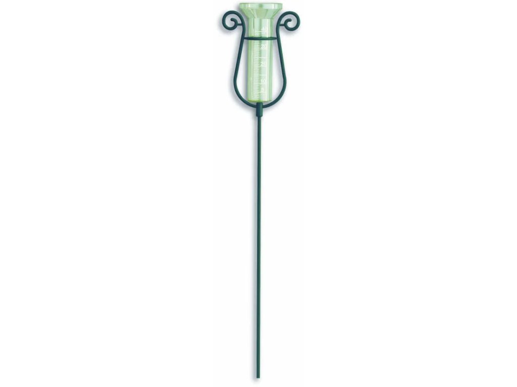 Plastová nádoba na měření dešťových srážek včetně kovového stojanu, v zelené barvě.Technické parametry