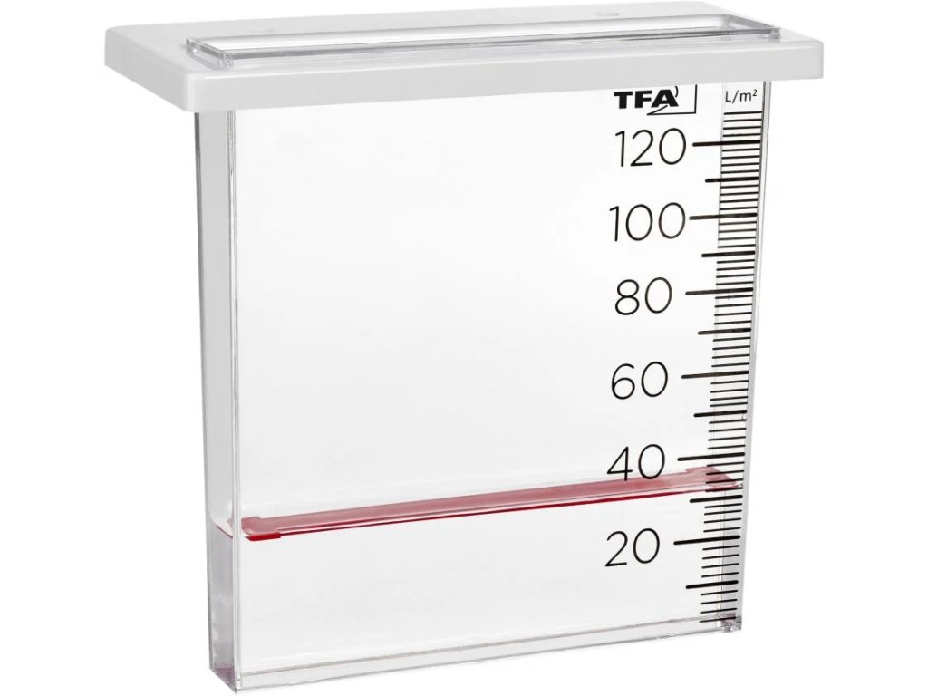 Srážkoměr je plastová či kovová nádoba na měření dešťových srážek.Se srážkoměrem TFA 47.1014 vyrobeným z vysoce kvalitního plastu odolného proti povětrnostním vlivům můžete snadno určit množství dešťových srážek. Na první pohled můžete vidět, kolik napršelo, zda bylo množství vody dostatečné pro rostliny ve vaší zahradě nebo zda potřebujete znovu zalévat.