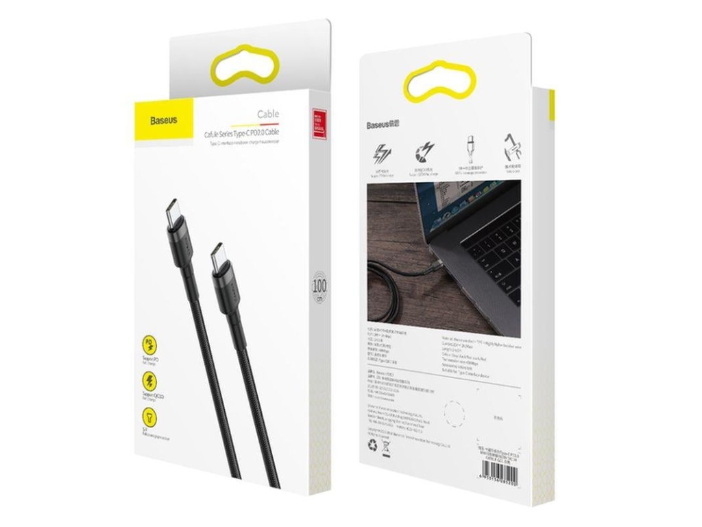 Baseus Cafule Series nabíjecí/datový kabel USB-C na USB-C PD2.0 60W Flash 1m, šedá-černá (CATKLF-GG1)