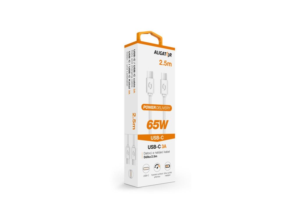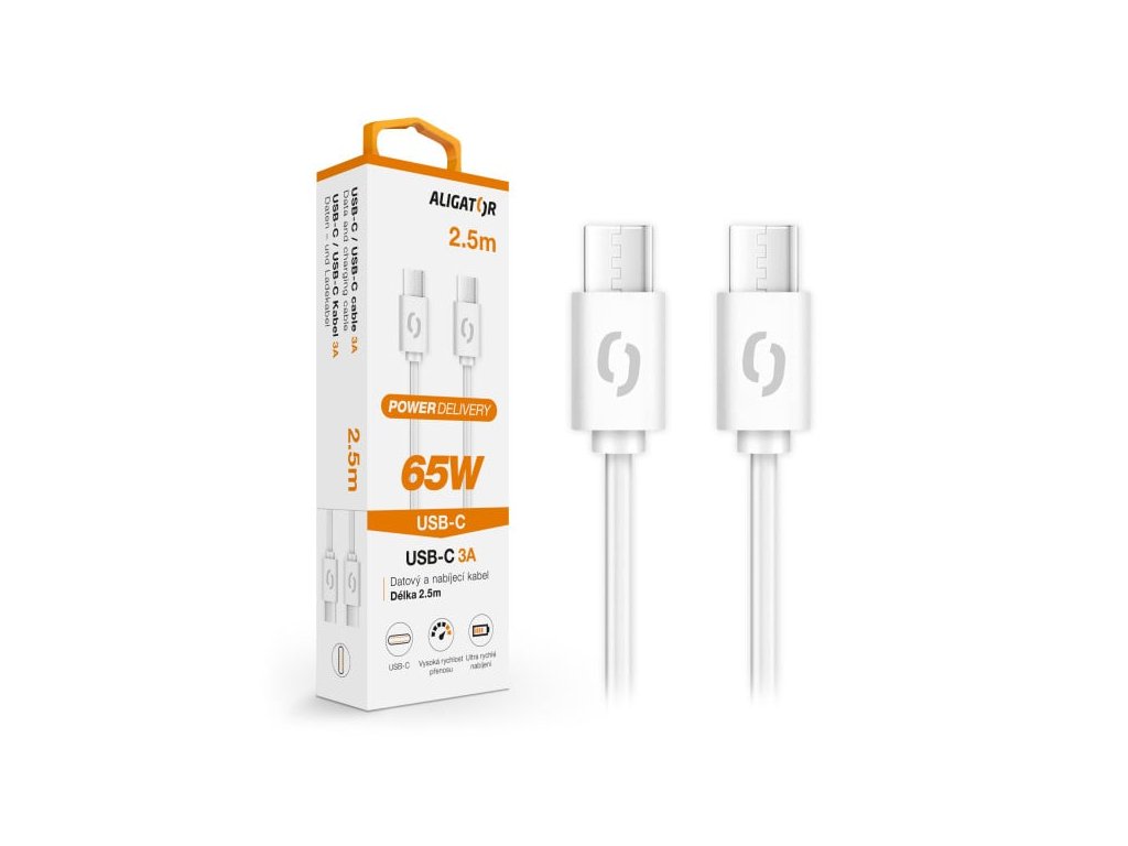 Datový kabel ALIGATOR POWER 65W, USB-C/USB-C 3A, 2,5m bílý (DATKP59)