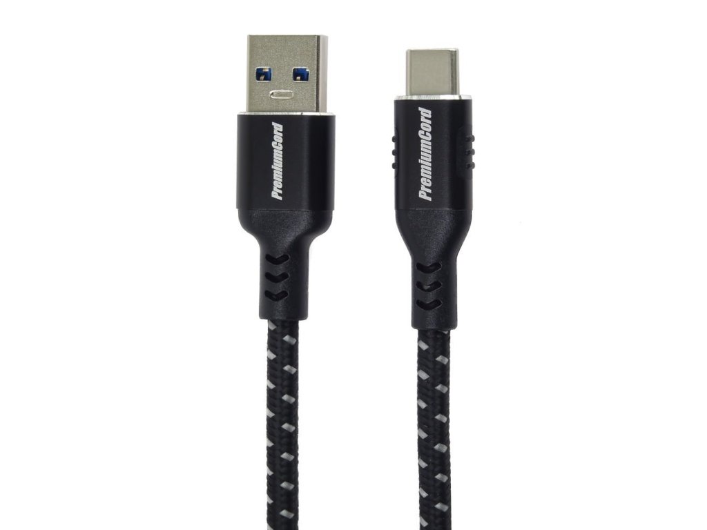 PremiumCord kabel USB-C - USB 3.0 A (USB 3.2 generation 1, 3A, 5Gbit/s) bavlněný oplet a hliníkové konektory 0,5m (ku31cx05)