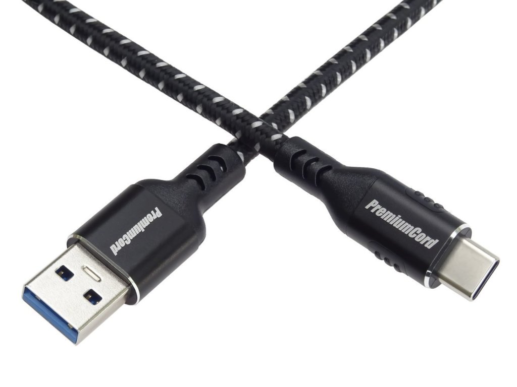 PremiumCord kabel USB-C - USB 3.0 A (USB 3.2 generation 1, 3A, 5Gbit/s) 0,5m bavlněný oplet a kovové hliníkové konektory- První konektor: USB 3.2 typ C samec
