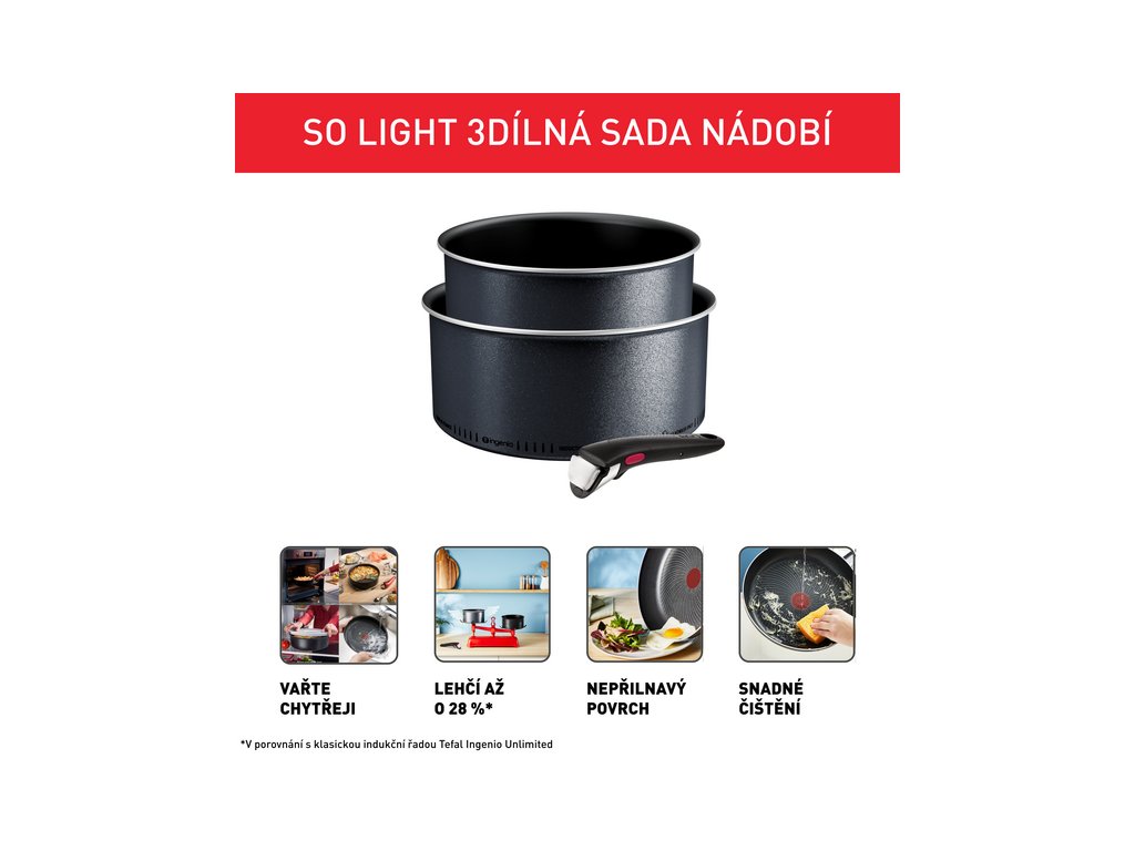 Lehké provedení:Hrnce Ingenio So'Light s technologií Light Tech jsou až o 28 % lehčí ve srovnání s modelem Ingenio Unlimited.