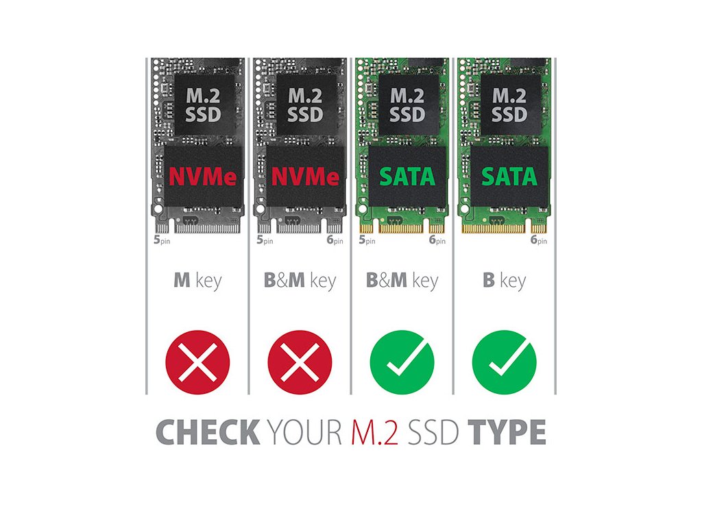 • Určeno pro disky formátu B+M-key a B-key o rozměru 2230, 2242, 2260 a 2280 mm.