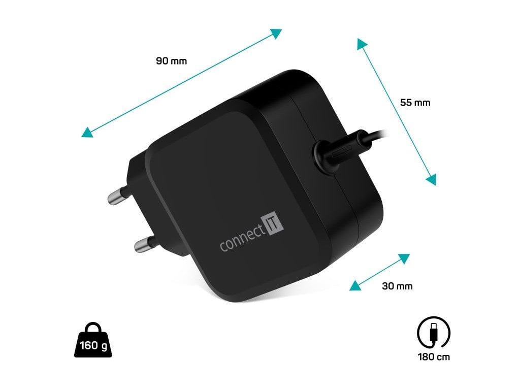 CONNECT IT C-Power Mini univerzální notebookový adaptér USB-C, PD 67W (CNP-1660-BK)