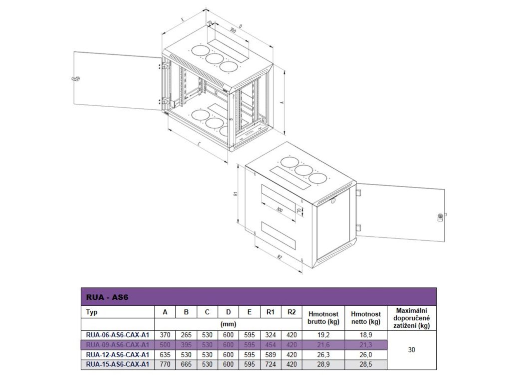 Rozměry RUA-09-AS6-CAX-A1