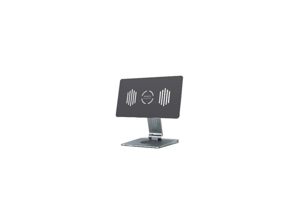 je osazen výkonnými výstupními porty typu USB C (PD 100W) nebo USB A 3.0. Můžete rozšířit pracovní plochu o další monitor pomocí HDMI 2.0 portu integrovaného do stojanu. Práci s daty a fotografiemi na paměťových kartách zvládnete díky slotů na SD a Micro SD karty. Neomezenou flexibilitu posytuje možnost rotace o 360 stupňů a polohování stojanu a držáku. K dispozici jsou tři USB 3.0 porty které dosahují maximální rychlosti přenosu dat až 5Gbps. Nechybí ani super výkonný USB C 3.1 (Gen.1) port disponující napájecím protokolem Power Delivery 3.0 který umožňuje napájet vaše zařízení o maximálním výstupním výkonu až 100W. Bezdrátové nabíjení dalších zařízení jako jsou mobilní telefony nebo bezdrátová sluchátka např. Airpods dosahuje maximálního výstupního výkonu až 15W. Plocha pro bezdrátové nabíjení je vyznačena silikonovou podložkou na spodní části stojanu. Podpora rozlišení FHD1080p 120Hz a UHD 3840 x 2160@30Hz nebo 4096x2160@60Hz na HDMI výstupu poskytuje plynulé a ostré obrazy na vašem televizoru, monitoru nebo projektoru přímo z vašeho iPadu! S vestavěnými sloty pro paměťové karty Micro SD a SD s rychlostí přenosu dat až 5Gbps, máte snadný přístup ke svým souborům a fotografiím. Můžete tak snadno zálohovat a sdílet svá data bez nutnosti dalších adaptérů nebo čteček karet. Při výrobě byly použity odolné prémiové materiály hliníku a silikonu. S hmotností 880g a rozměry 240x163x228.9mm je stojan ideální pro použití v kanceláři, doma nebo na cestách. Díky možnosti složení stojanu do vodornové polohy se perfektně hodí do batohu nebo cestovní tašky. Stojan je navržen tak, aby perfektně pasoval k vašemu zařízení a nabídl vám nejlepší možný zážítek při práci, hraní her nebo sledování videí. Je kompatibilní s iPad 2021/2022, iPad Air 4/5 a iPad Pro 11". Silný magnet, který bezpečně uchytí váš iPad ve správné pozici a s jeho pomocí můžete snadno nastavit optimální úhel pro sledování videí, práci s dokumenty nebo videohovory. Magnetické uchycení poskytuje pevné a stabilní spojení, takže se nemusíte obávat, že by váš iPad náhle sklouzl.