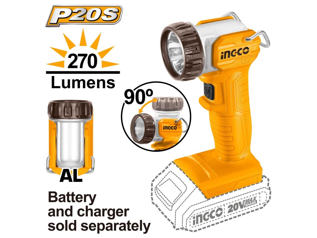 Ingco CWLI2038 AKU pracovní svítilna 270lm bez baterie a nabíječky (CWLI2038)