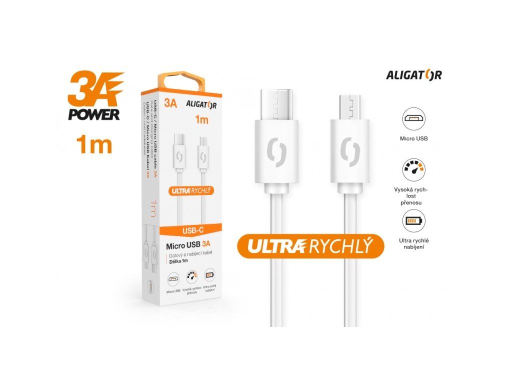 Datový kabel ALIGATOR POWER 3A, USB-C/micro USB 1m bílý (DATKP42)