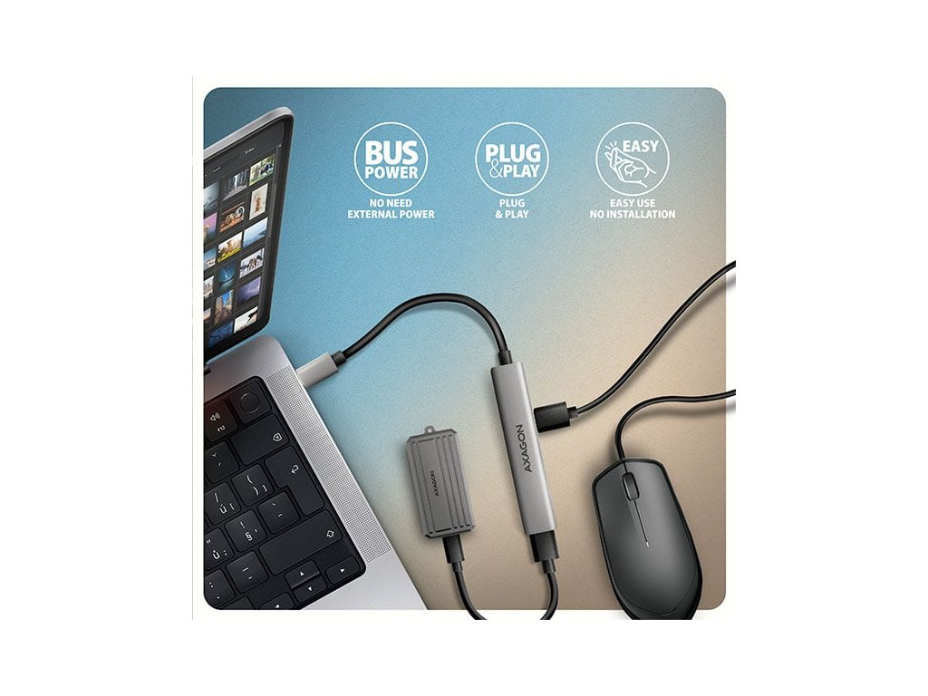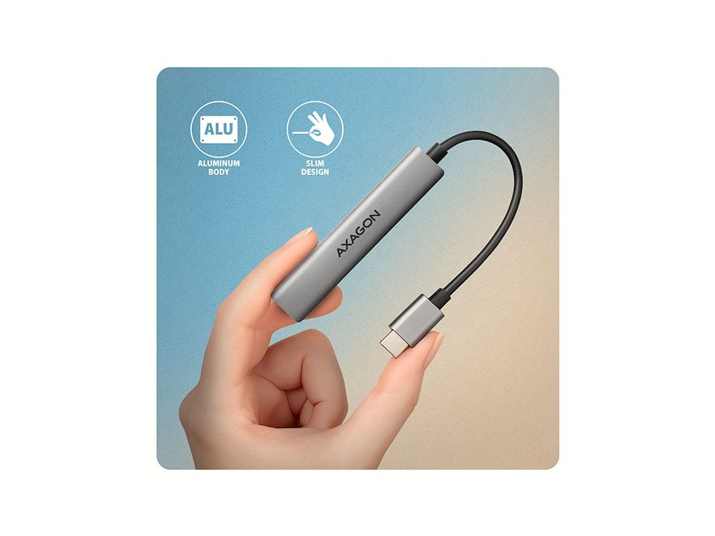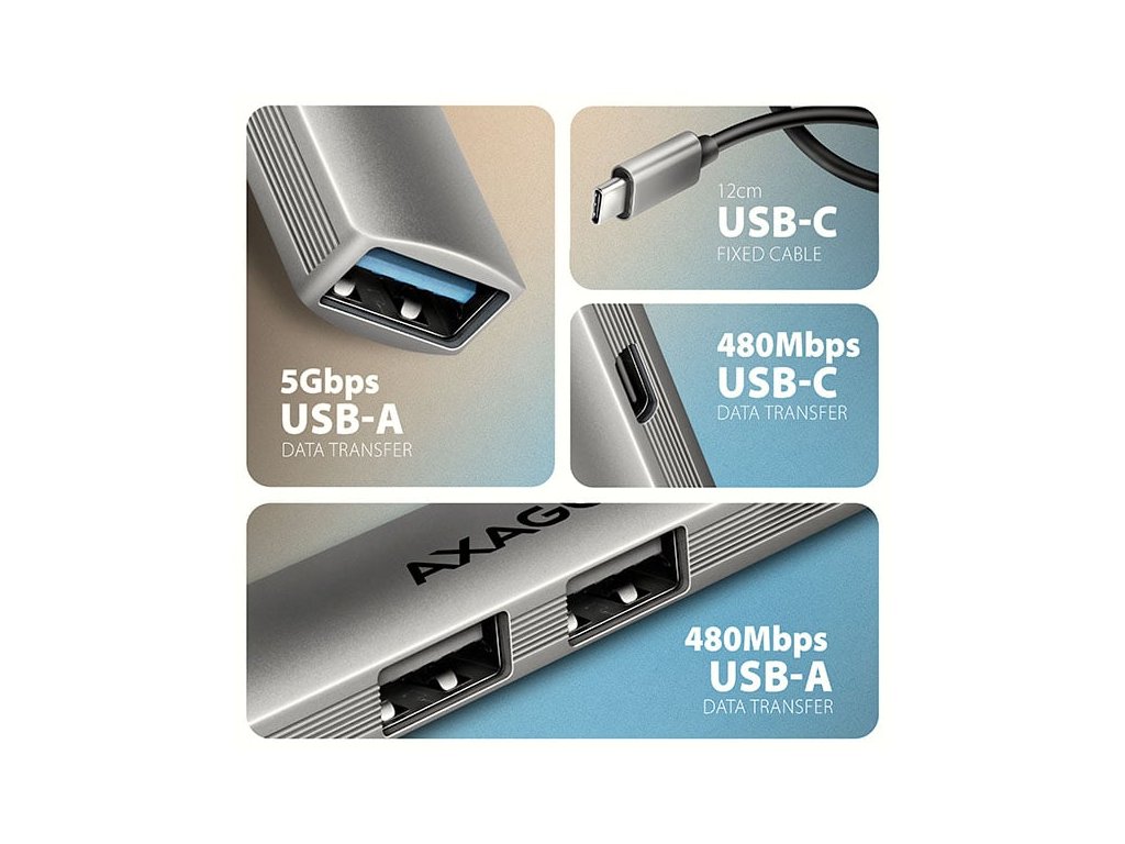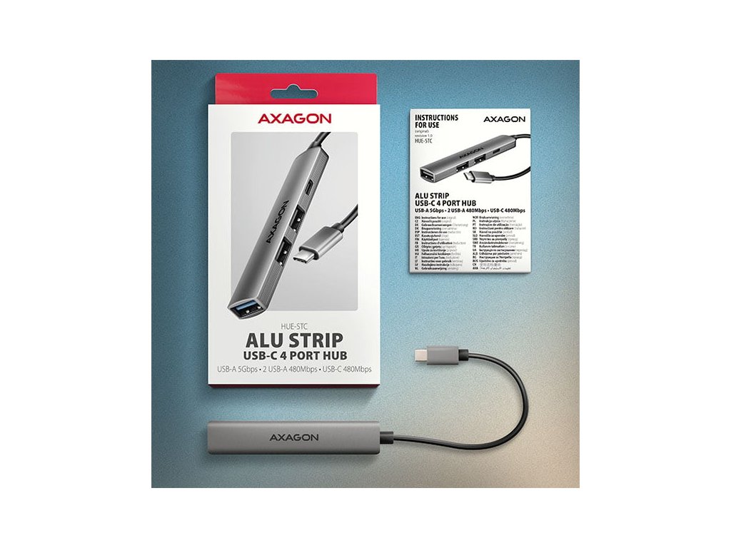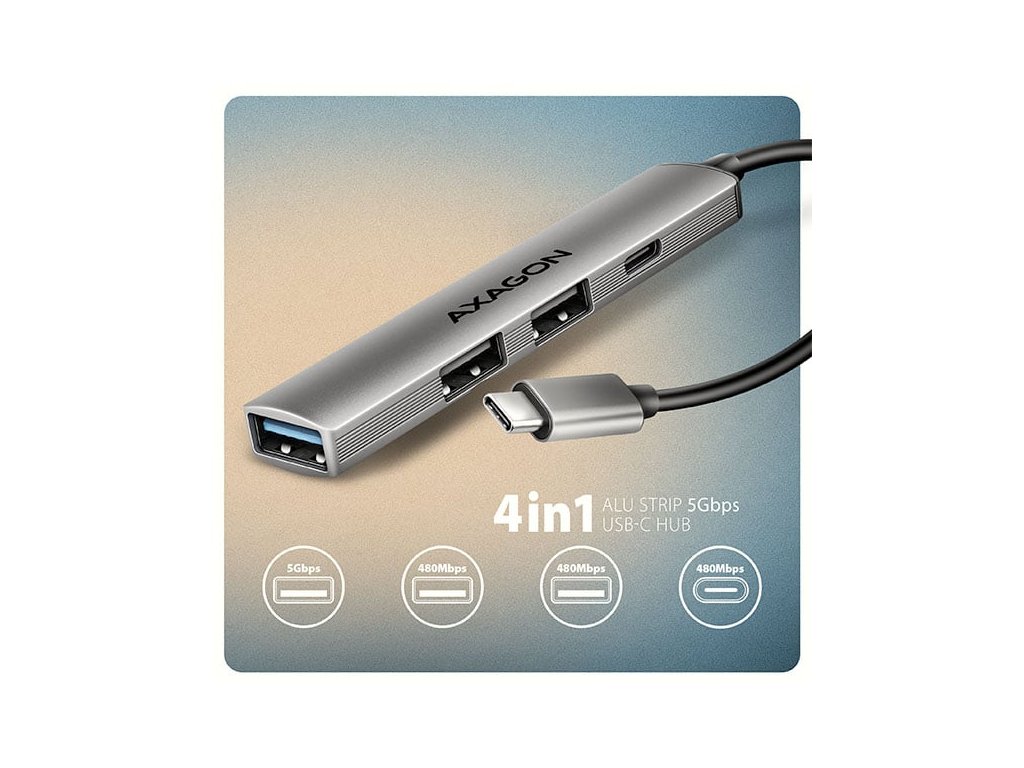 AXAGON HUE-STC, 4x USB ALU STRIP hub, 1x USB-A 5Gbps, 2x USB-A & 1x USB-C 480Mbps, kabel USB-C 12cm (HUE-STC)