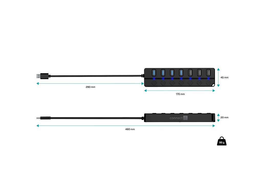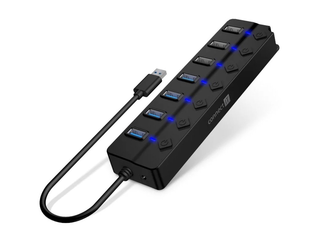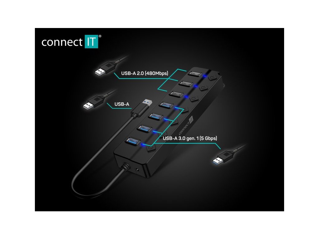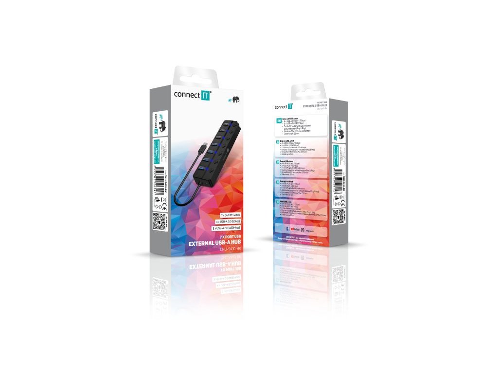 CONNECT IT Mighty Switch 2 USB-A hub, (4xUSB-A 3.0, 3xUSB-A 2.0), externí (CHU-5410-BK)