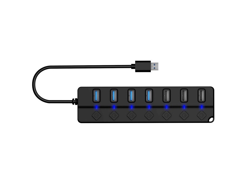 Praktický USB hub se 7 USB (4xUSB-A 3.0, 3xUSB-A 2.0) porty s ON/OFF switchem.