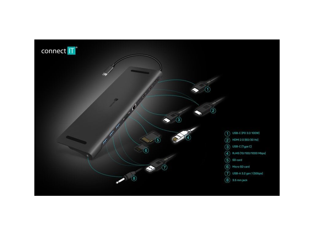 CONNECT IT USB-C dokovací stanice, 11v1 (2xHDMI), externí, antracitový (CHU-9010-AN)