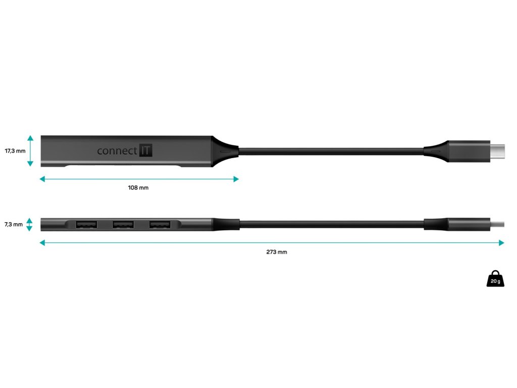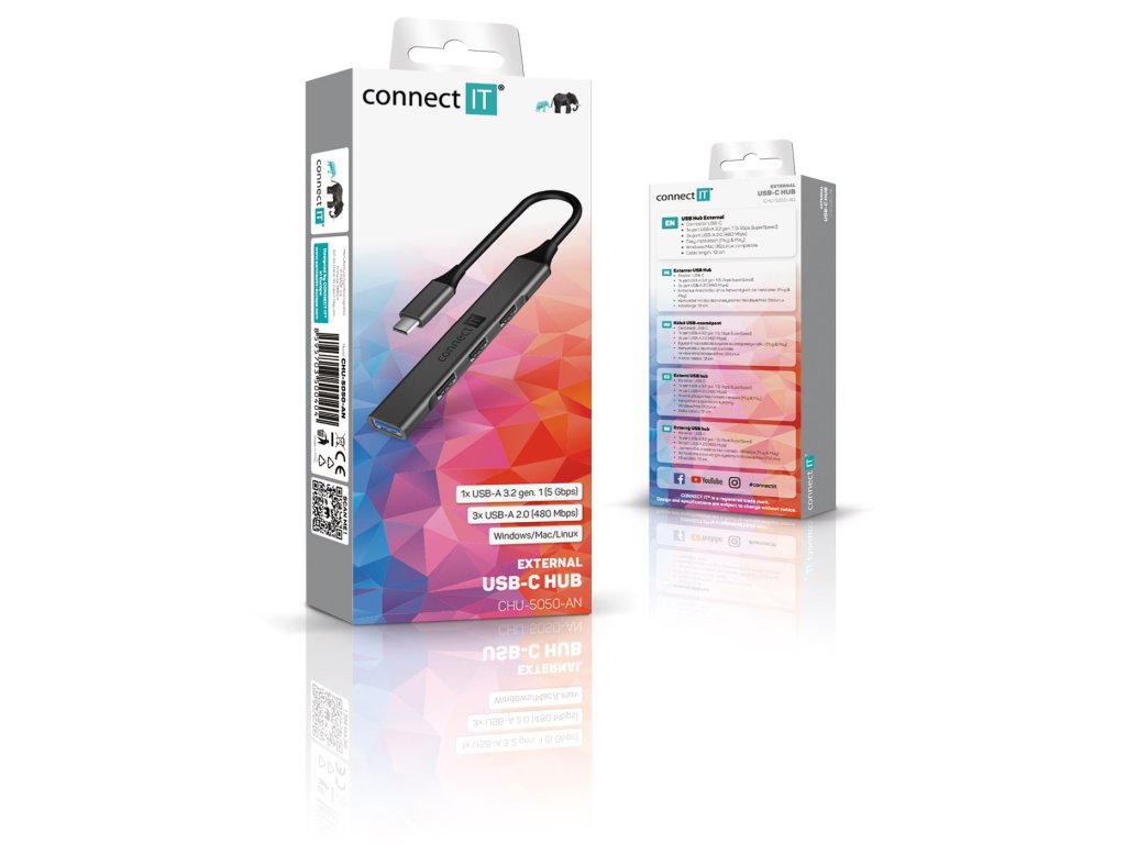 Connect IT USB-C hub, (1xUSB-A 3.0, 3xUSB-A 2.0), externí, antracitový (CHU-5050-AN)