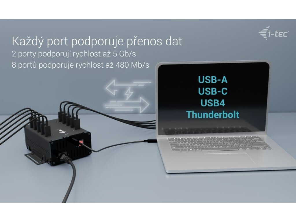 • 8x port USB-C podporující přenosovou rychlost až 480 Mb/s