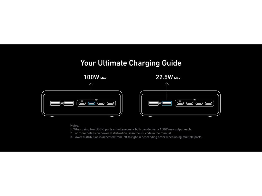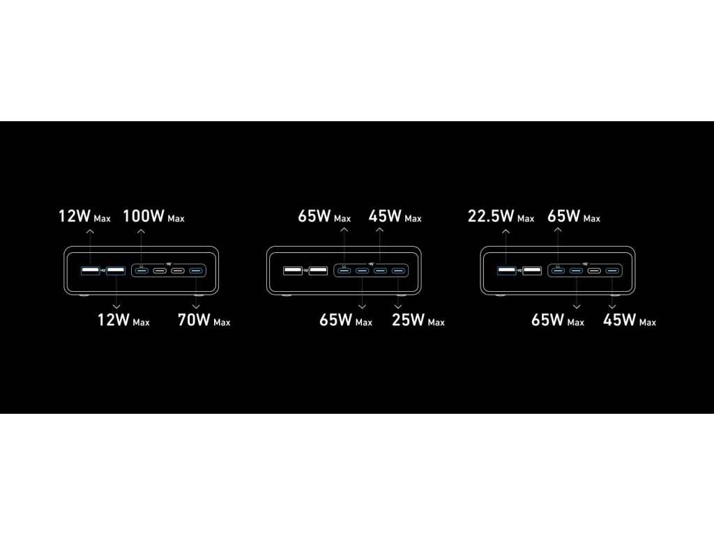 Výstup USB-C: USB-C1/C2/C3/C4: 5,0V?3,0A, 15,0W/9,0V?3,0A, 27,0W/10,0V?2,25A, 22,5W/15,0V?3,0A, 25,0V,5A, 45,0V,5 A, 100,0 W (100,0 W Max)