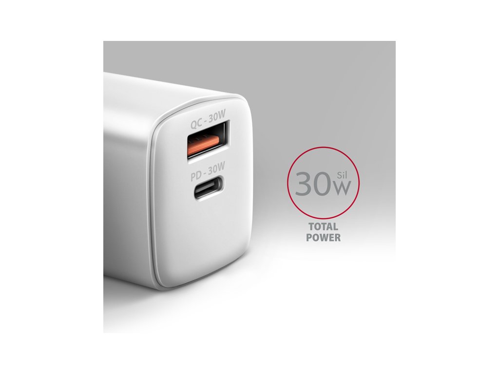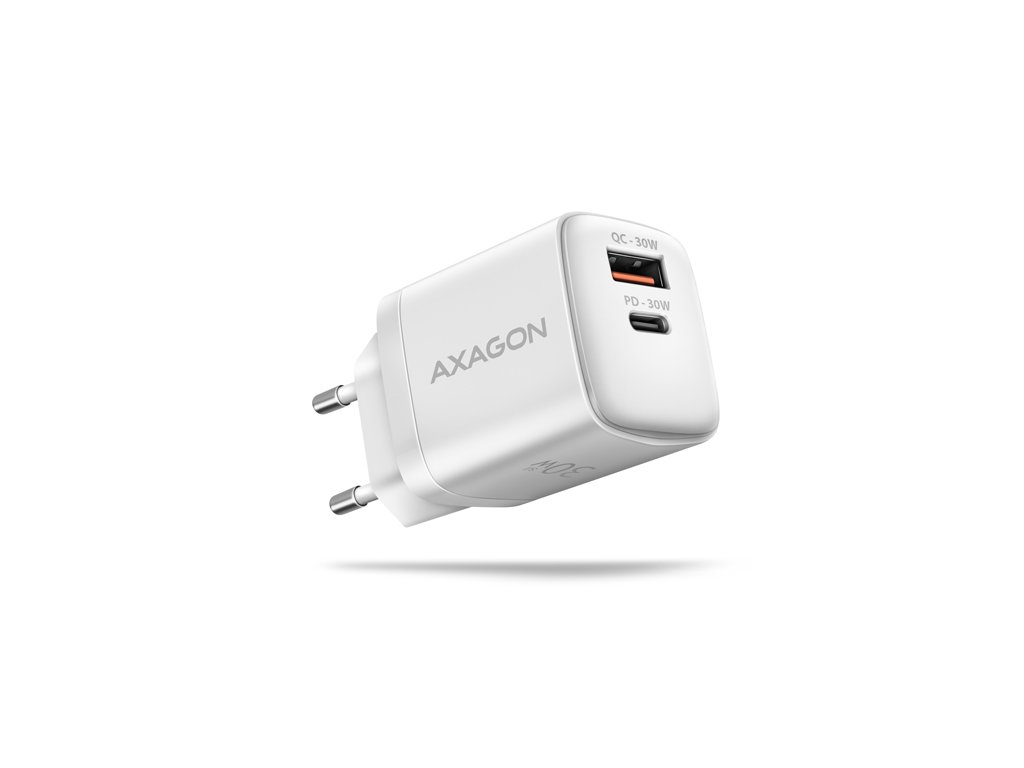 AXAGON ACU-PQ30W, Sil nabíječka do sítě 30W, 2x port (USB-A + USB-C), PD3.0/PPS/QC4+/SFC/AFC/Apple, bílá (ACU-PQ30W)