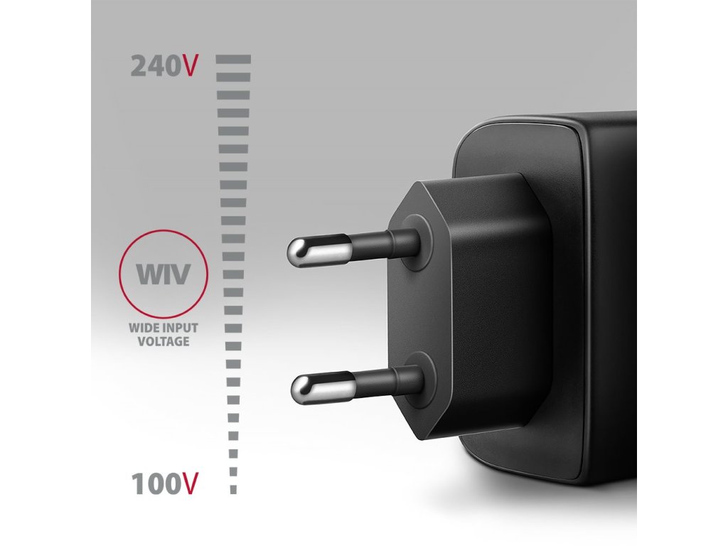 • Wide Input Voltage - funkce širokého rozsahu vstupního napětí, chrání adaptér proti podpětí a přepětí na vstupu a umožní použití více "národních napájecích standardů".