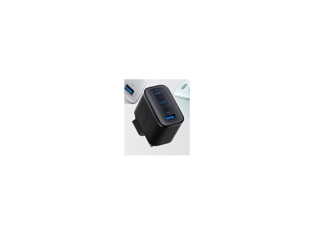 Anker Nano Charger (70W, 3 Ports) v černé barvě je kompaktní a výkonný nabíjecí adaptér navržený pro rychlé a bezpečné nabíjení až tří zařízení současně. Díky pokročilé technologii GaN (gallium nitride) nabízí vysoký výkon při zachování malých rozměrů a nízké hmotnosti.
