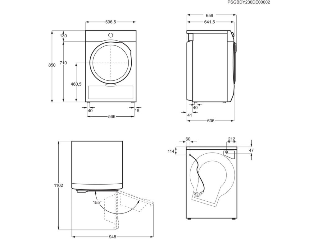 Spotřeba energie na 100 cyklů (kWh): 79Spotřeba energie v kWh na cyklus, na základě programu eco 40-60.: 0.79Délka ECO programu - částečná náplň (hod:min): 2:30Délka ECO programu (hod:min): 4:15Jmenovitá kapacita sušení (v kg): 9.0Třída emisí hluku šířeného vzduchem: AÚroveň emisí hluku šířeného vzduchem (dB(A) re 1pW): 60Účinnost kondenzace (%): 94Způsob sušení: Tepelné čerpadloKapacita sušičky (kg): 9Rozměry (mm): 850x596x659Ovládání: Bílý LEDObjem bubnu (l): 118Materiál bubnu: Nerezová ocelTyp motoru: Invertorový motor se zárukou 10 let