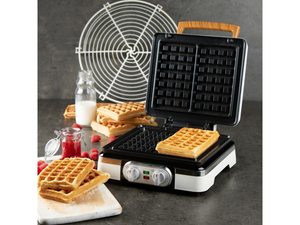 Pomocí manuálního termostatu s jemným krokováním můžete nastavit požadovanou teplotu a s časovačem nastavíte přesný čas, takže tu správnou křupavost vaflí ohlídá přístroj za vás. Světelné kontrolky ukazují, kdy je přístroj připraven k použití. Díky silnému příkonu 1 280 až 1 520 W budou vaše vafle hotové během okamžiku.