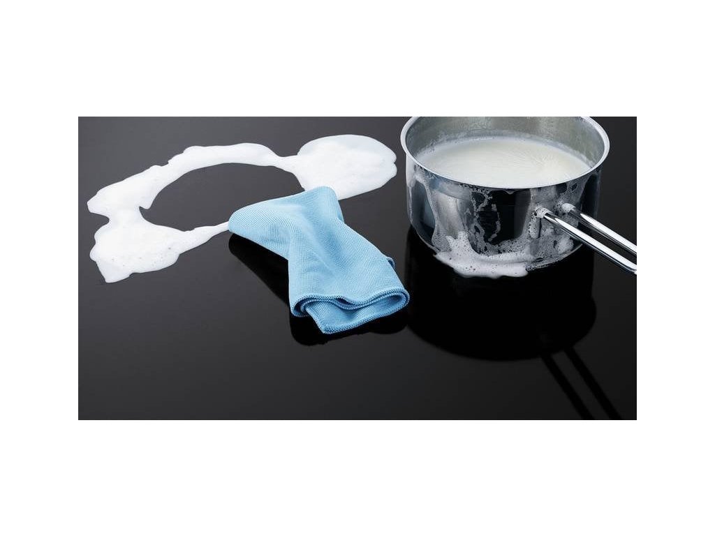 Uchovávejte vaši varnou desku při přípravě jídla čistou. Díky indukční technologii zůstává okraj varných zón na dotyk chladný. Takže dokonce i když vaříte při vysokých teplotách, rozlité jídlo můžete odstranit snadno a bezpečně ihned, jakmile něco takového nastane.