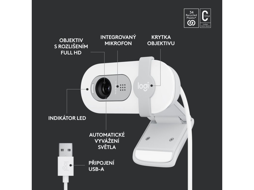 Logitech Brio 100 Full HD Webcamera, bílá (960-001617)