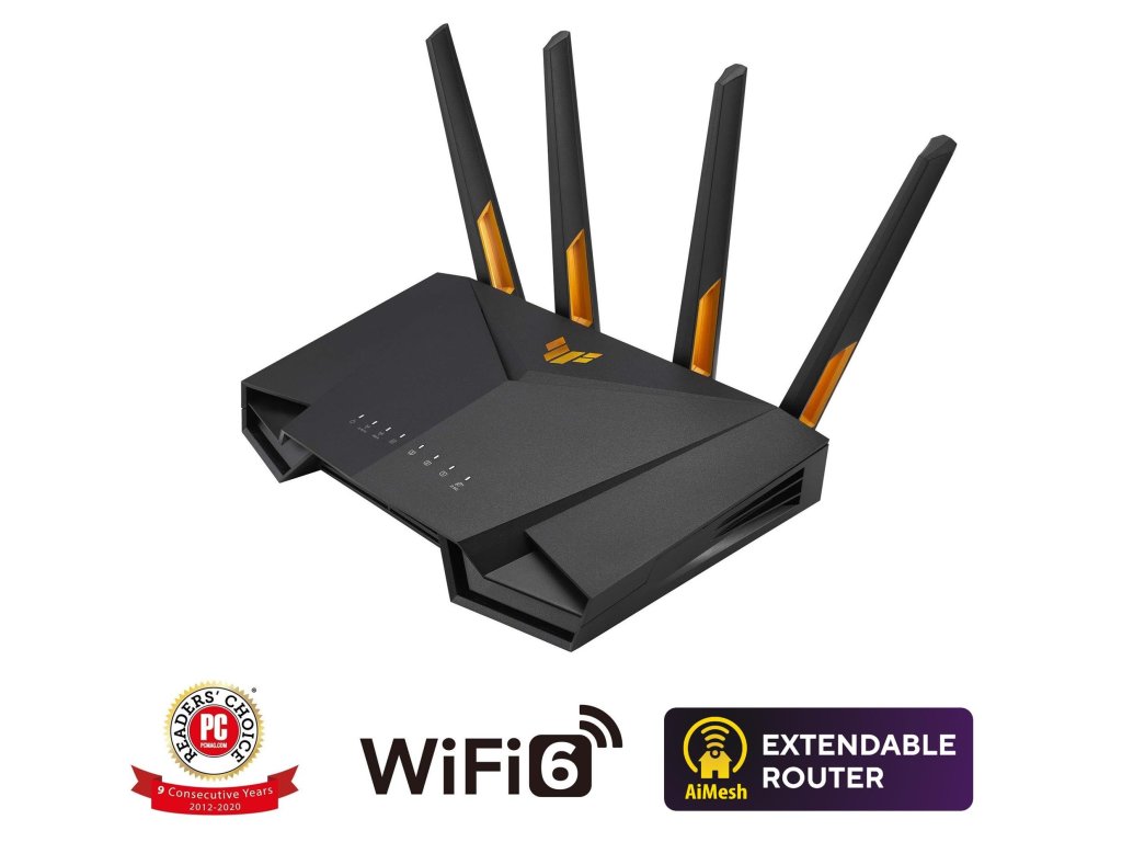 Dvoupásmový herní WiFi 6 router TUF Gaming AX4200 s režimem mobilního hraní, přesměrování portů ve 3 krocích, port 2,5 Gb/s, AiMesh pro mesh WiFi, zabezpečení sítě AiProtection ProUltrarychlá WiFi 6 - užívejte si rychlosti až 4200 Mb/s a čtyřnásobnou účinnost sítě díky OFDMA a 160MHz kanálům.